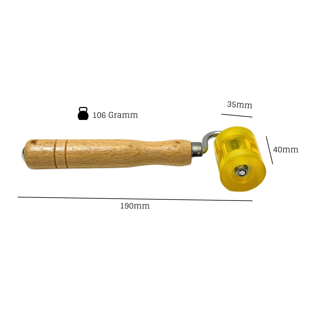 De aandrukrol is ideaal voor het verwerken van afdichtingstape en patches. Met deze rol kunt u op bepaalde punten ruim 80 kg contactdruk op de cm² uitoefenen, wat een maximale dichtheid bij het lijmen mogelijk maakt.