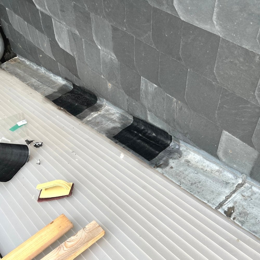 Für Risse und Löcher in den Tafeln können kleinere Zuschnitte der Dach Reparaturbänder zur Abdichtung aufgebracht werden.