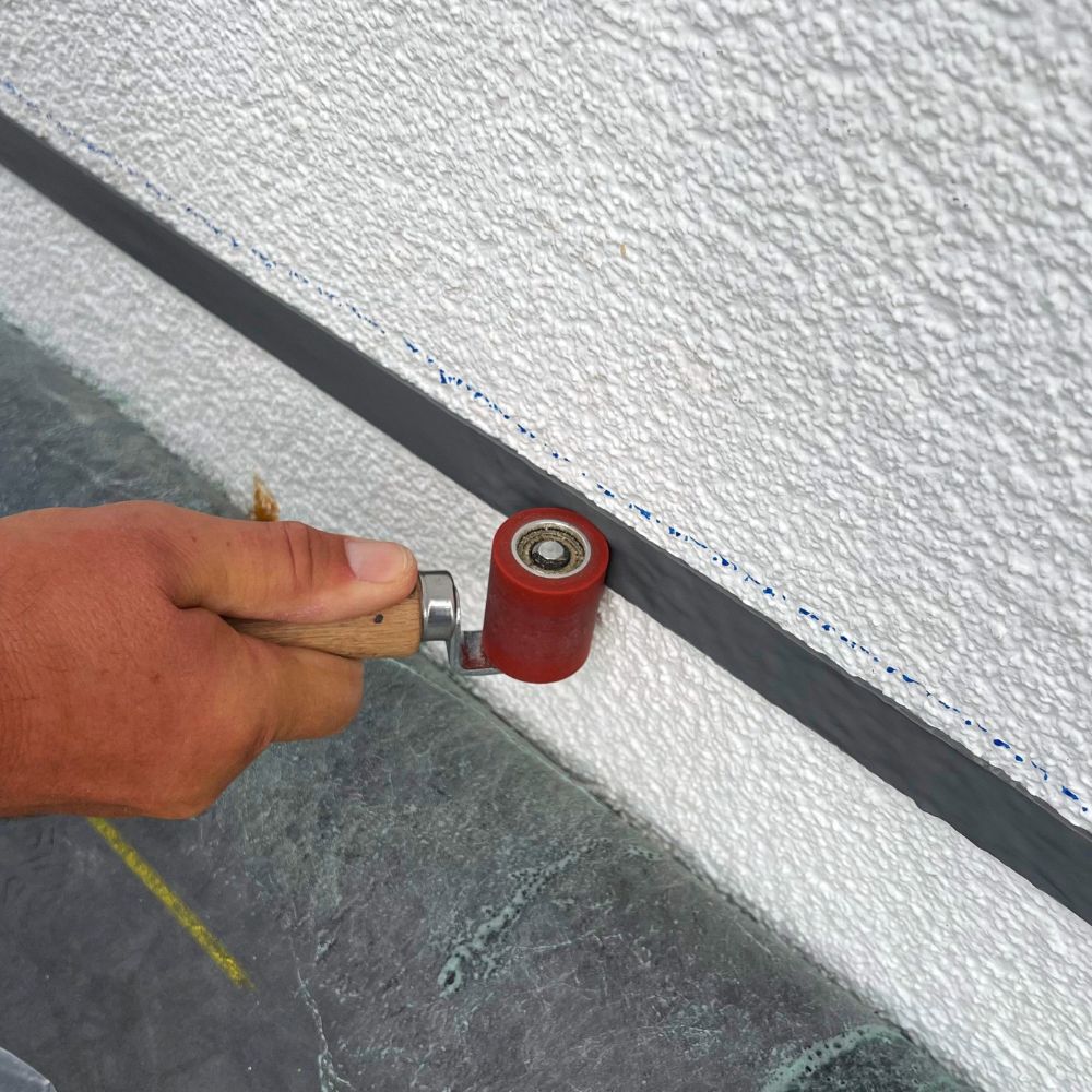 Haben Sie Schwierigkeiten einen sauberen Wandanschluss herzustellen? Häufig kommt es in Bereichen des Wandanschlusses oder Ähnlichem zu Schwierigkeiten aufgrund von Unebenheiten oder dreidimensionalen Formen. Vielerlei Abdichtungsprodukte werden mechanisch durch eine Kappleiste angepresst und mit Silikon versiegelt. Neben dem optischen Aspekt hat auch diese Praxis vielerlei Probleme: keine Dehnfähigkeit für Zug und Scherkräfte, keine langfristige UV Beständigkeit & keine Formbarkeit.