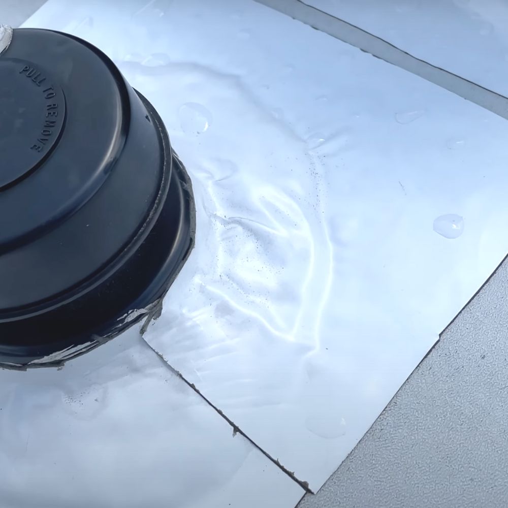 Häufig treten Undichtigkeiten rund um die Lichtkuppeln auf. Kleben Sie hierfür das Dach Reparaturband einfach über die Fugen zwischen dem Dach und der Kuppel (oder Lüfter etc.).