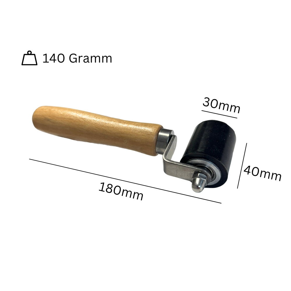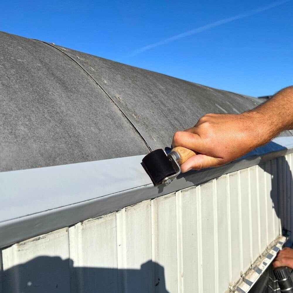 Rolka dociskowa jest idealna do obróbki taśm uszczelniających i łatek. Za pomocą tego wałka można selektywnie wywierać znacznie ponad 80 kg nacisku kontaktowego na cm², co zapewnia maksymalną szczelność podczas klejenia.
