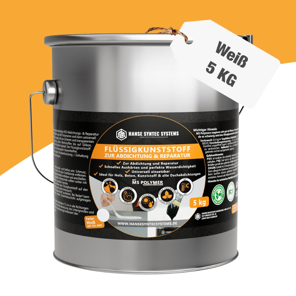 HSS setzt auf die Qualität von MS Polymere. MS Polymere besitzen vielerlei Vorteile. Die HSS Flüssigkunststoffe sind frei von Bitumen, Silikonen und Lösemitteln. Ein weiterer Vorteil ist die Hydrophilie von MS Polymeren. Dies bedeutet, dass Restfeuchte im Untergrund oder die Benetzung mit Wasser, einen Aushärtungsprozess beschleunigt. Die Beständigkeit gegen UV-, Witterung und Schimmel ist mit lösemittelhaltigen Alternativen mindestens gleichzusetzen.