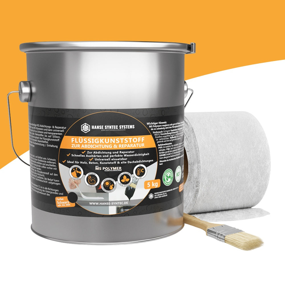 5Kg Dose Flüssigkunststoff, 1 Pinsel 38mm Breite, 1 Stück Verstärkungsvlies 1000 x 52,5cm