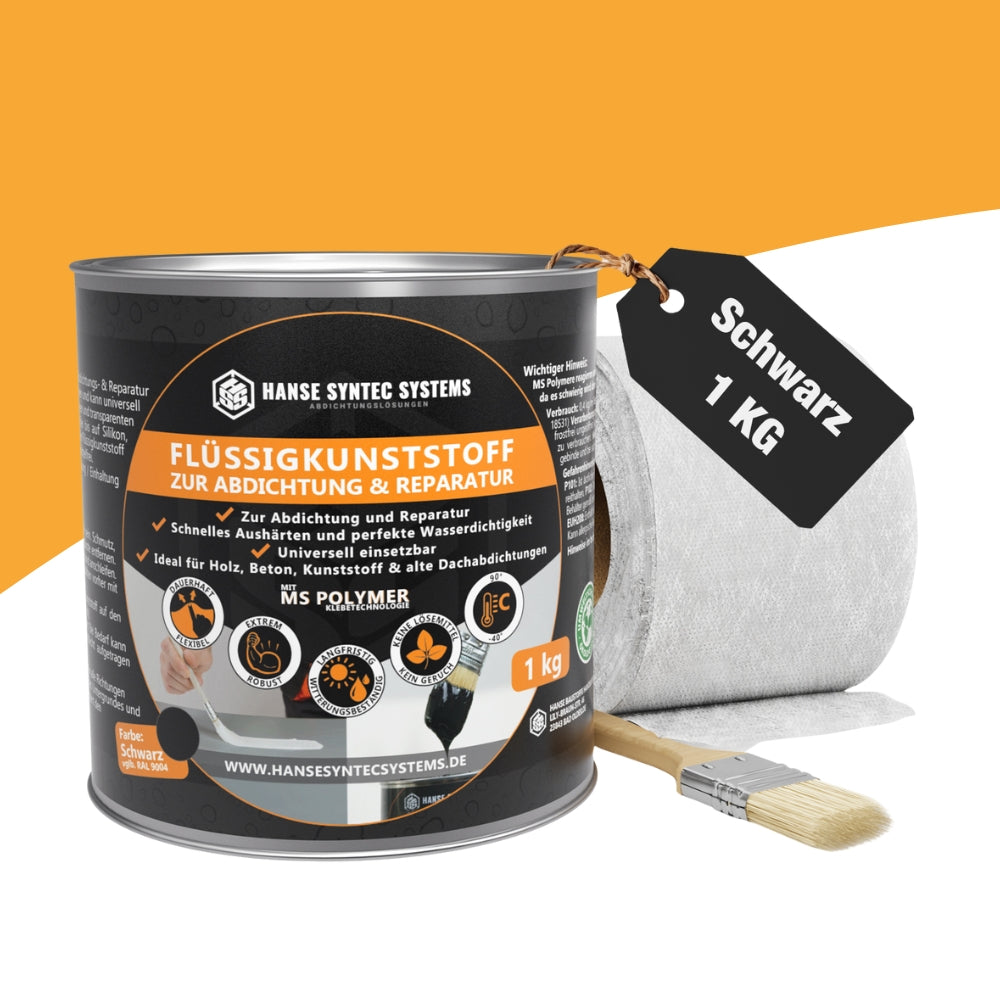 Inhalt: 1Kg Dose Flüssigkunststoff, 1 Pinsel 38mm Breite, 1 Stück Verstärkungsvlies 200 x 52,5cm