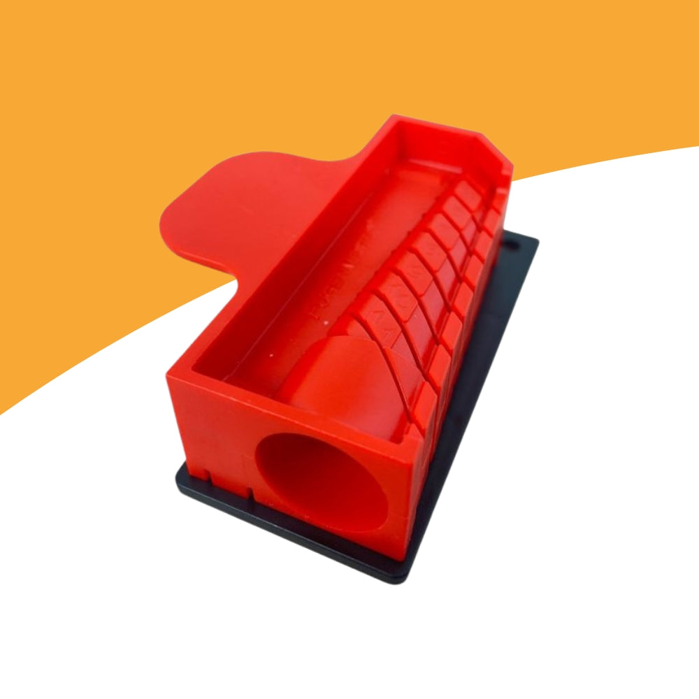 Die HSS® Schneide- & Dosierhilfe hilft die Kartuschendüse auf der richtigen Länge im 45 Grad Winkel zu schneiden, um den gewünschten Raupendurchmesser zu erzielen. Einfach die Düse in die Vorrichtung einsetzen und dem benötigten Raupendurchmesser entsprechend an der jeweiligen Position auf der Skala mit einem scharfen Cutter-Messer abschneiden.